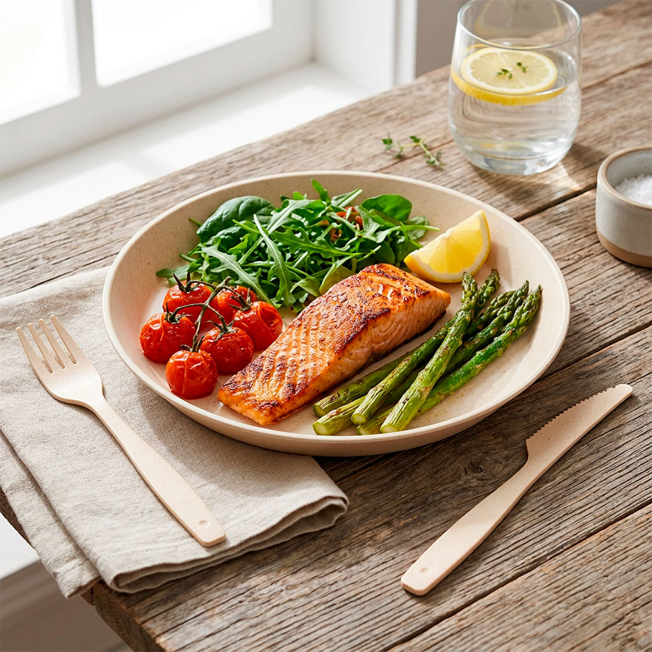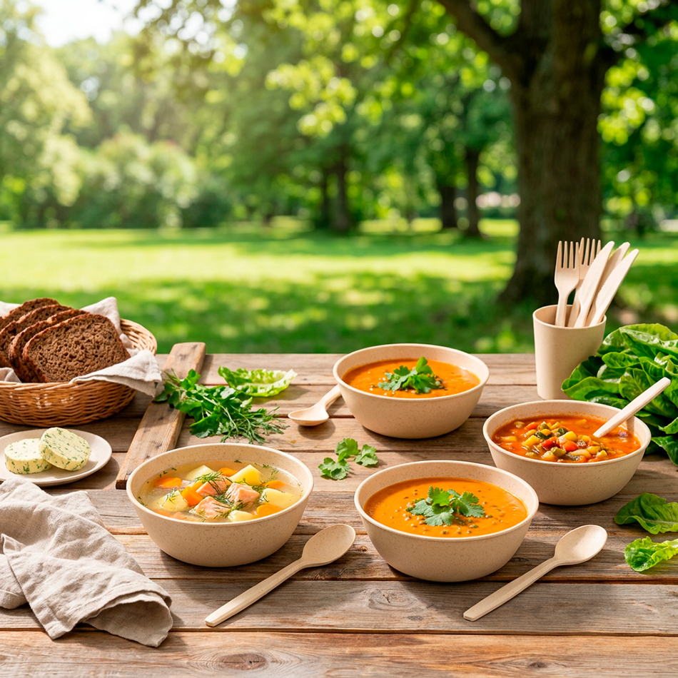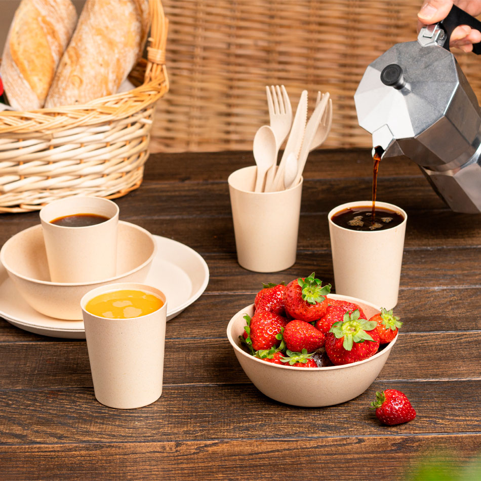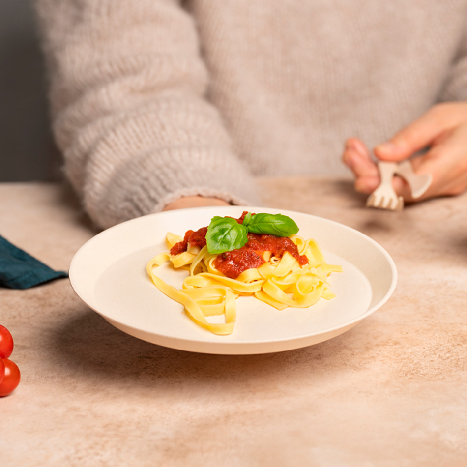 We promise that our strong and durable cutlery does not bend or break in normal everyday use. It works just like a normal fork, knife or spoon. Smooth mouthfeel and no residual taste, unlike many other alternatives. The cutlery withstands daily-use temperatures over 100 °C and is microwave safe.